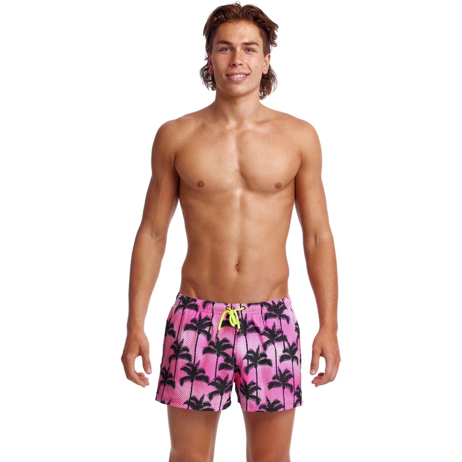Korte en modieuze, getailleerde watershort van sneldrogend polyester. Ze hebben een geïntegreerde slip voor extra steun, diepe zijzakken, een muntzakje en een koordsluiting. Nu met messing hardware van het merk Funky Trunks, inclusief metalen punten, oogjes en klinknagels. Funky Trunks patch op het been. De binnenbeenlengte is 8,5 cm.