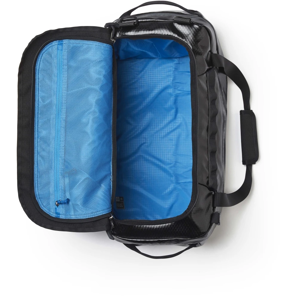 De nieuwe is gemaakt met een waterdichte TPU coating en gerecycled polyester ripstop voor hoge duurzaamheid. Elke reistas heeft een groot uitzetbaar eindvak met ritssluiting om vuile schoenen en spullen te scheiden, en is verpakt in handige herbruikbare verpakkingsblokjes. Het ontwerp is voorzien van een slijtvaste bodem met een extra schuimlaag, afneembare schouderbanden met een eenvoudig te gebruiken gespbevestiging, een gaasvak met rits aan de binnenkant, extra grote T-grip ritsen en een gevoerde handgreep met een glasvezel verstevigingsstang.