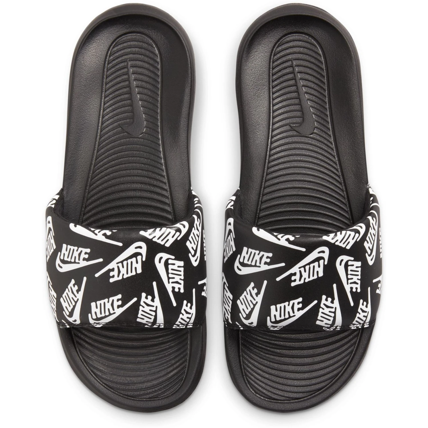 Details van de Nike Victori One Slides met print