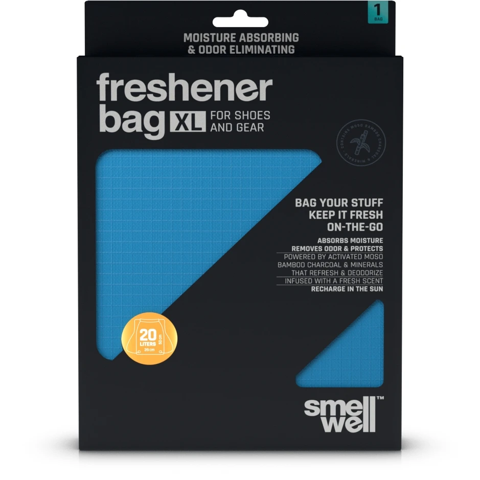 SmellWell is ontwikkeld door Zweedse atleten en wetenschappers met een actieve levensstijl. SmellWell Freshener Bags bevatten Moso-bamboe en natuurlijke mineralen en zouten die vocht, bacteriën en geur bestrijden. Het speciale ripstop buitenmateriaal is scheur- en waterbestendig. Getest en gecertificeerd onder REACH voor consumenten- en milieuveiligheid. Vrij van schadelijke stoffen en volledig vrij van biociden of ftalaten. Alle SmellWell producten worden klimaatneutraal geproduceerd.